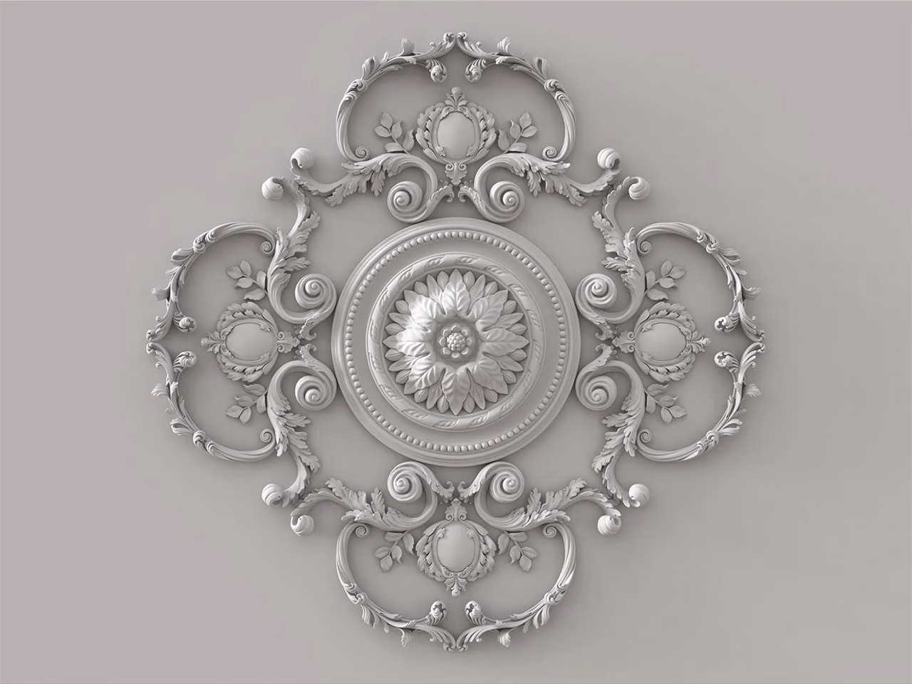 不僅平面燈座使用飾花延伸可用有簡約、繁複造型,角花也可以因應需求選擇不同式樣。若想將視覺集中於燈座本身,彎角可挑選尺寸較小的造型,反之,若以豐富整個天花牆面設計為重,彎角可挑較大尺寸的。